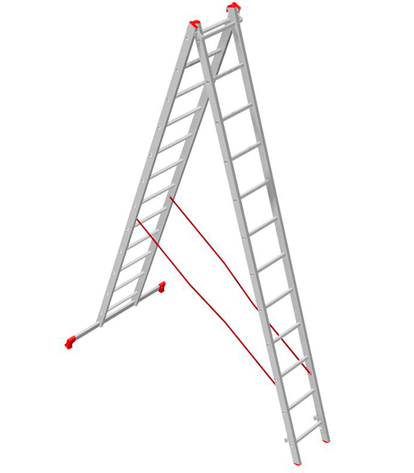 Лестница многофункциональная алюминиевая 2-х секционная, в каждой секции 12 ступеней. Имеет широкие алюминиевые скобы, обеспечивающие плотный зажим выносной секции и прочные страховочные стяжки, предохраняющие лестницу от самопроизвольного раскладывания.