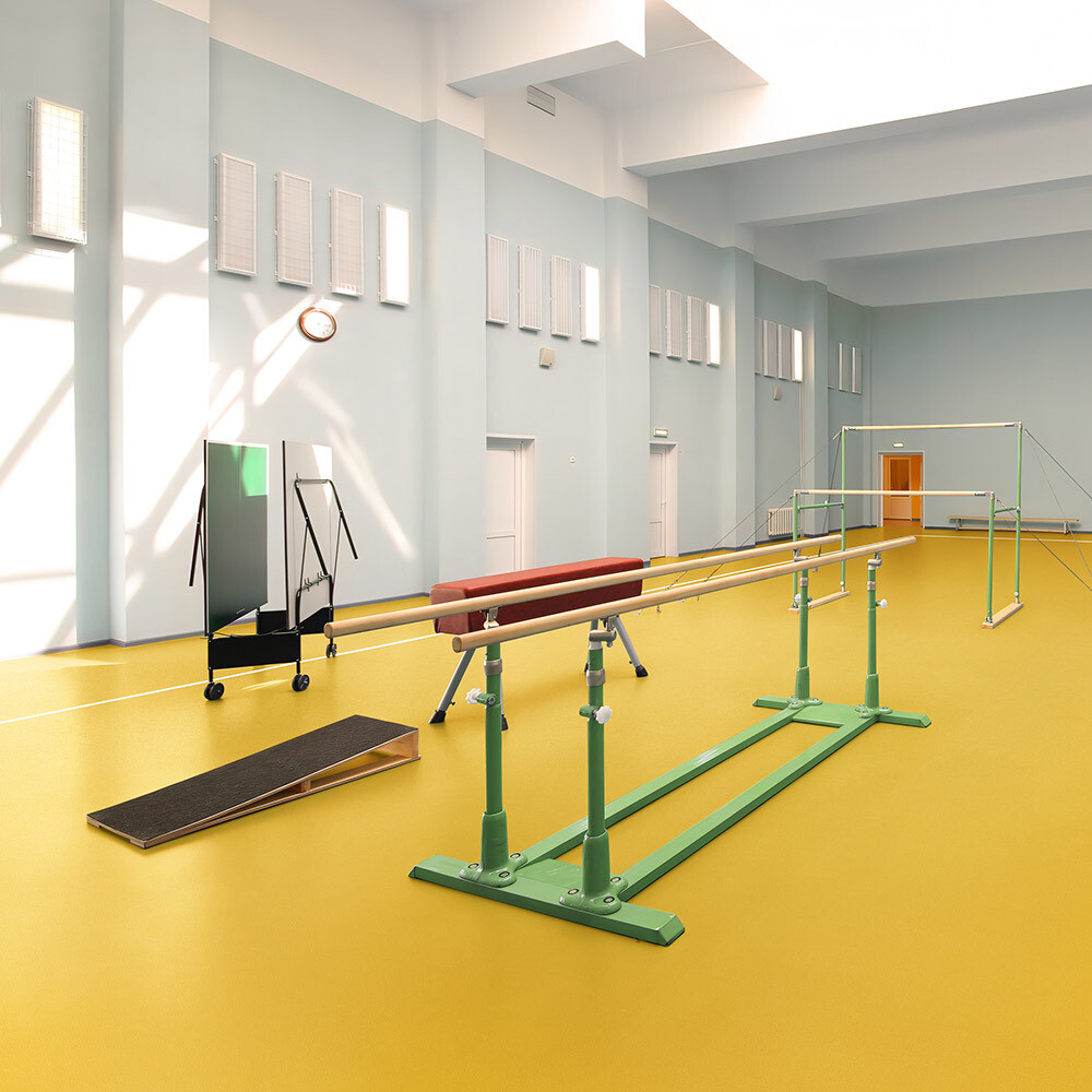 Линолеум спортивный гетерогенный Tarkett Omnisports Action 65 предназначен для использования в универсальных спортивных залах для занятий гимнастикой, общей физической подготовкой и игровыми видами спорта.