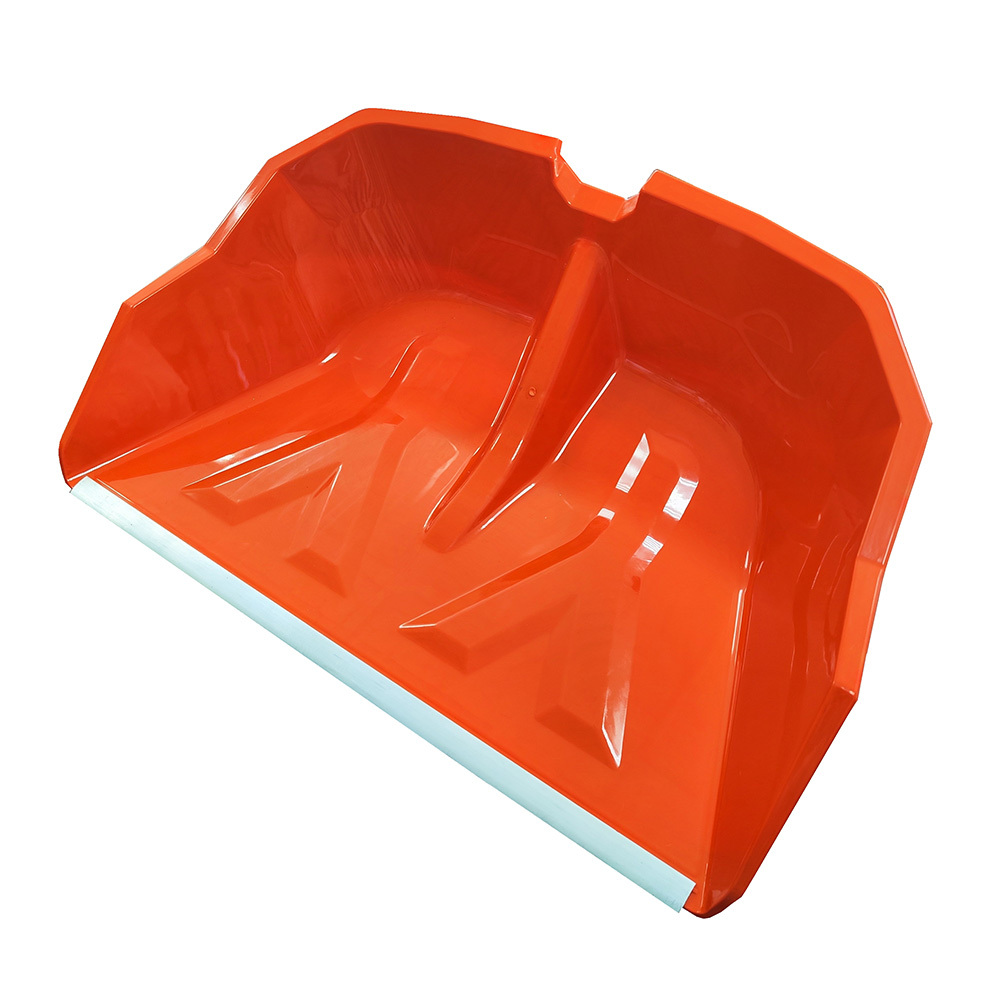 Ковш лопаты изготовлен из первичного блоксополимера пропилена специальной марки. Благодаря качественному материалу получено изделие высокой прочности. Кромка лопаты защищена специальным алюминиевым профилем с небольшим закруглением по краю. Это позволяет легче убирать снег, где территория не очень ровная. Поверхность лопатного ковша гладкая, за счет постоянного контроля за состоянием оснастки, что значительно снижает вероятность налипания снега. Поставляется без черенка, диаметр тулейки 32 мм. Данную лопату возможно укомплектовать самостоятельно деревянным, алюминиевым, стальным или фибергласовым черенком.