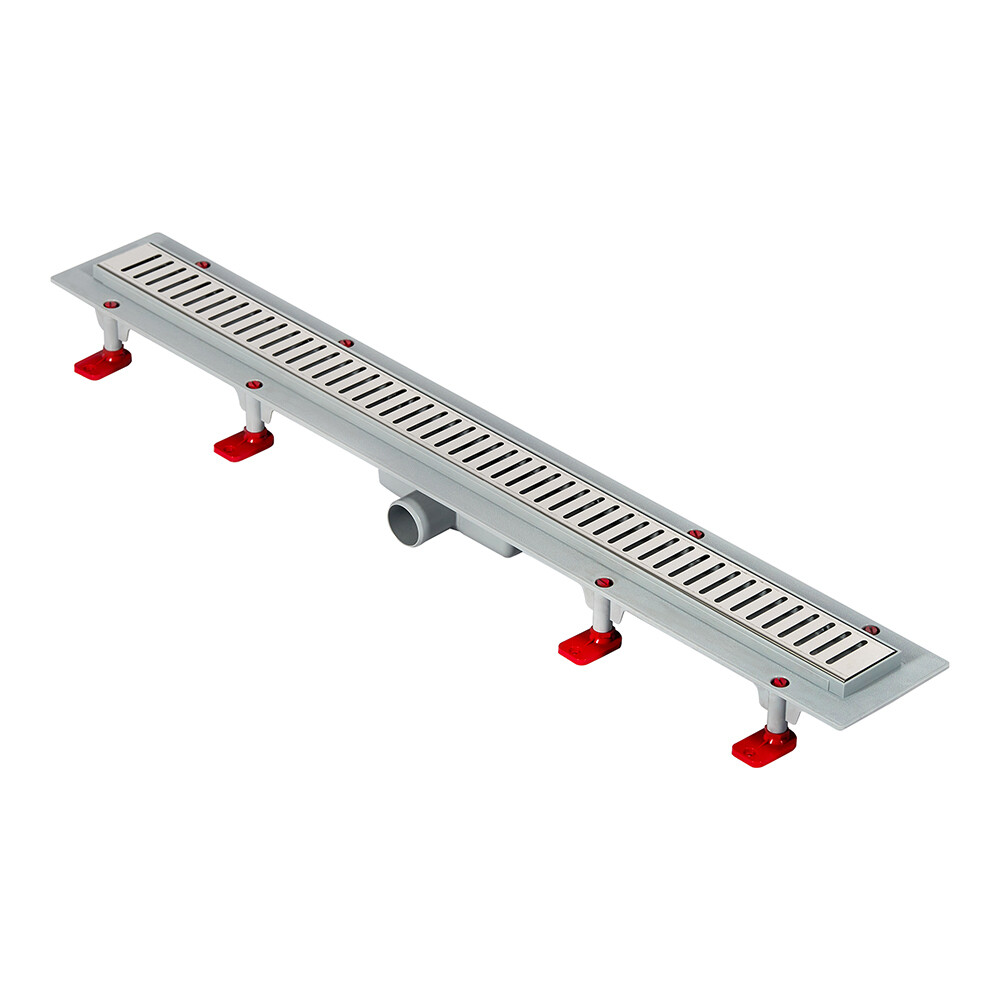 Имеет вытянутую прямоугольную форму, также называют дренажным каналом или душевым лотком. Сверху конструкция трапа закрывается декоративной решеткой из нержавеющей стали. Это идеальное решение для помещений с редким водоотведением или при использовании в помещении «теплого пола», который высушивает «гидрозатвор». Трап устанавливается в пол, общую высоту монтажа можно регулировать от 66 до 102 мм.