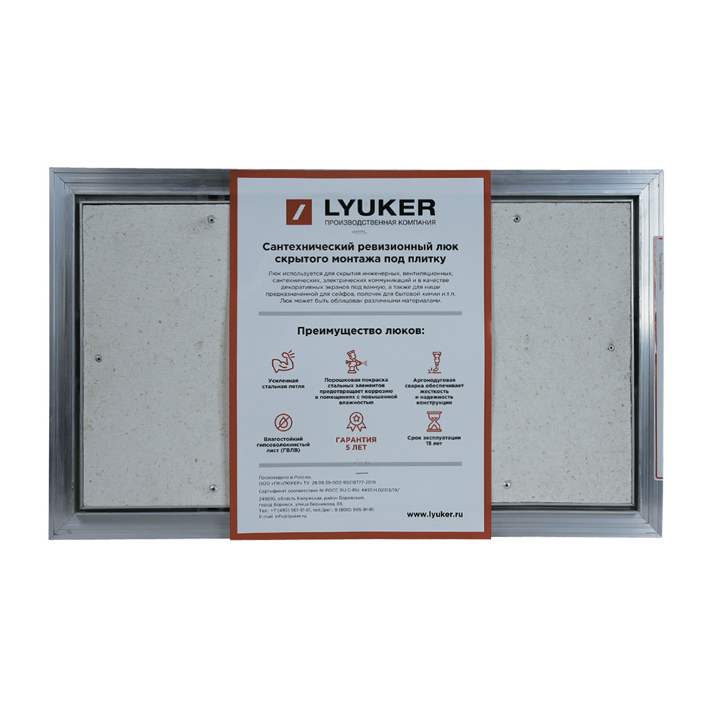 Люк ревизионный под плитку Lyuker AL-KR алюминиевый 300х500 мм скрытый нажимной