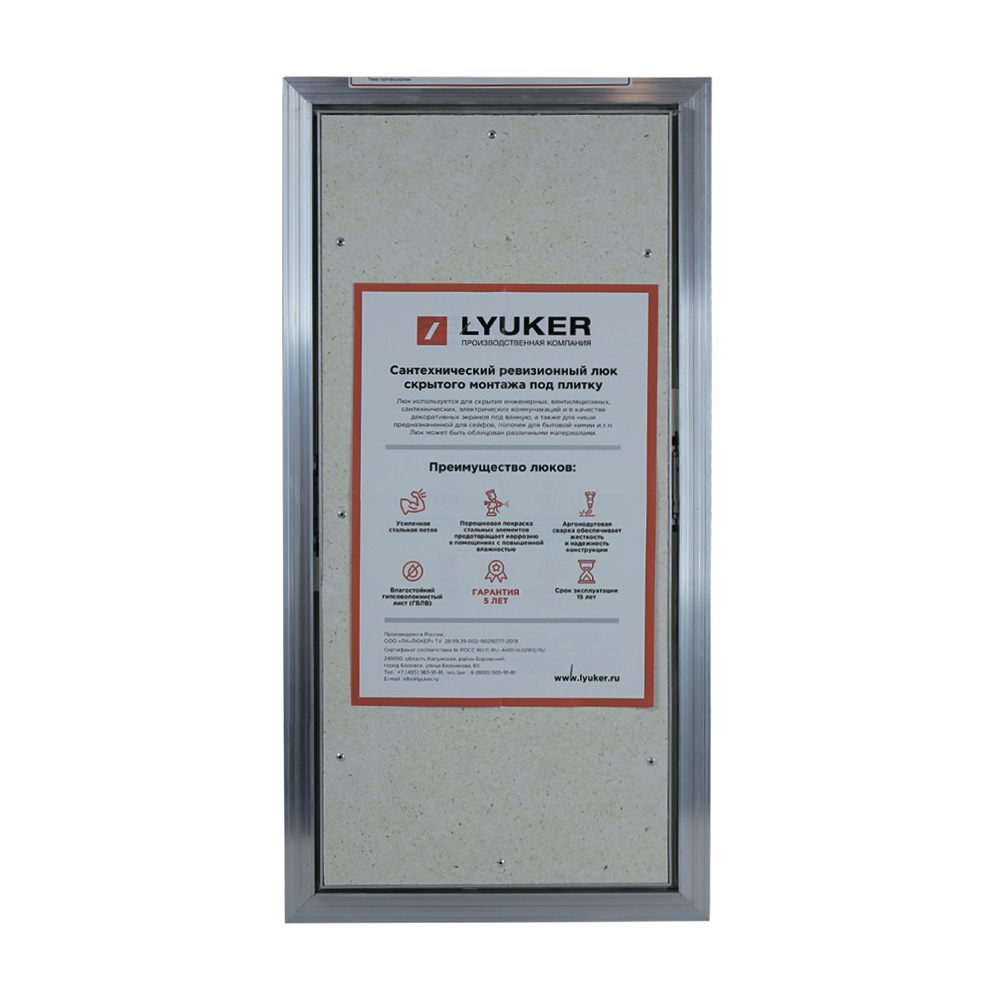 Предназначен для скрытия инженерных систем и коммуникаций в стенах с последующей облицовкой плиткой или иными отделочными материалами. Люк может быть установлен в гипсокартонные, кирпичные и блочные стены. Дверца люка имеет фронтальное открывание с вылетом петли до 8 см., для открывания дверцы требуется одновременное нажатие с правой и левой стороны в местах расположения защелок. Дверца утапливается на 2-3 мм до щелчков, затем защелки выталкивают ее вперед. Присоска требуется только для монтажа, в процессе эксплуатации люк открывать только нажатием.