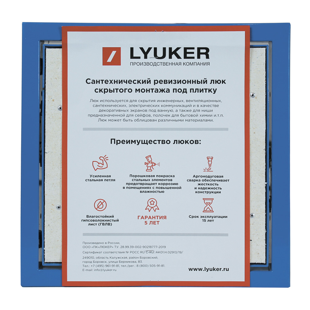 Люк ревизионный под плитку Lyuker К стальной 300х300 мм скрытый нажимной