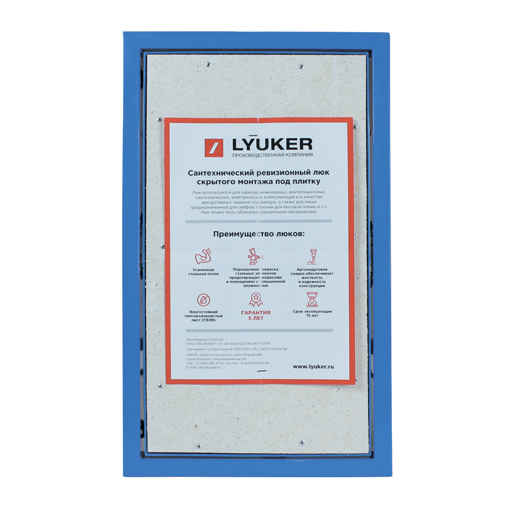 Люк ревизионный под плитку Lyuker К стальной 500х300 мм скрытый нажимной