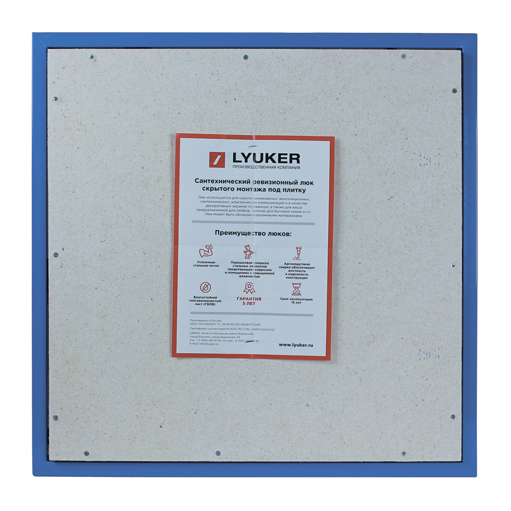 Люк ревизионный под плитку Lyuker К стальной 600х600 мм скрытый нажимной