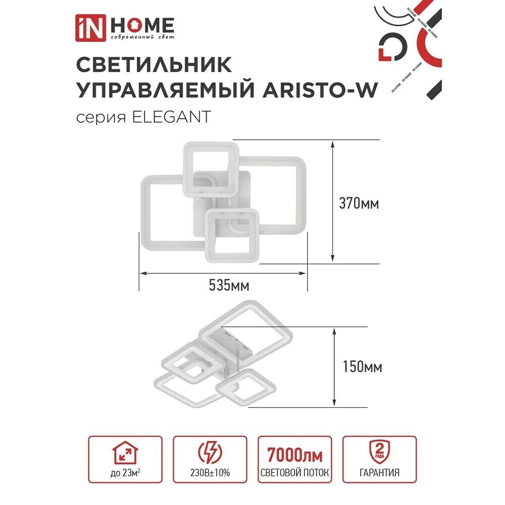 Люстра светодиодная потолочная IN HOME Elegant Aristo-W 90 Вт 3000-6500К 23 кв.м (4690612047300)
