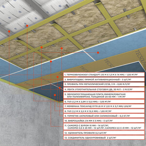 — демпфирование элементов металлических конструкций (направляющие профиля, швеллеры, прямые подвесы);
