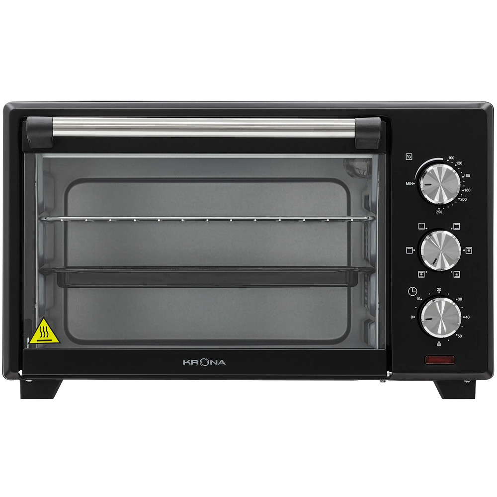 Электрическая отдельностоящая мини-печь Krona OFEN 28 BL. Объем 28 литров. Корпус из нержавеющей стали. Антипригарное покрытие камеры. Мощность 1600 Вт. Механическое управление. Плавная регулировка температуры от 100 до 250 С. 4 нагревательных элемента из нержавеющей стали. Таймер от 0 до 60 минут со звуковым сигналом окончания работы. 6 режимов работы: верхний нагрев, нижний нагрев, двойной нагрев, верхний нагрев с конвекцией, нижний нагрев с конвекцией, двойной нагрев с конвекцией. Внутренняя подсветка. Индикатор работы. Стеклянная дверца. Ненагревающаяся стальная ручка дверцы.
