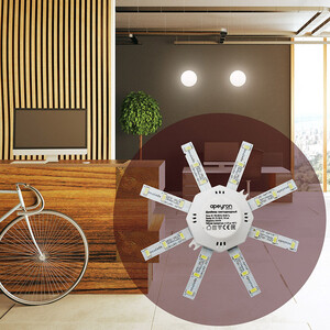 Комплект светодиодных линеек «Звездочка» с артикулом 12-16 предназначен для замены стандартных ламп. Благодаря конструкции этого комплекта плафон светильника будет светиться на все 100 %, а уровень освещенности повысится даже по сравнению со светодиодными лампами аналогичной мощности. Благодаря большей площади охлаждения срок службы будет в разы больше. Набор светодиодных линеек в собранном виде имеет круглую форму. Данное изделие работает от напряжения 220 В и не требует дополнительных устройств для подключения. Благодаря отсутствию мерцания светового потока отлично подходит для использования в жилых помещениях, а также административных, медицинских и производственных учреждениях.