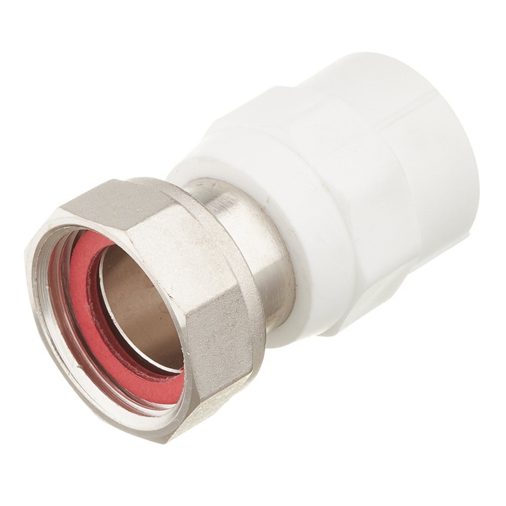 Предназначена для соединения полипропиленовой трубы и компонента инженерной системы с резьбовым подключением. Монтаж осуществляется с помощью накидной гайки. Резьба – внутренняя трубная по ГОСТу 6357. Предусмотрен участок корпуса под гаечный или трубный рычажный ключ.