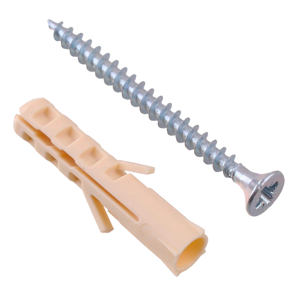 Состав: Саморез универсальный 3,5х40 — 12 шт; Дюбель нейлоновый распорный 6х30 — 12 шт.