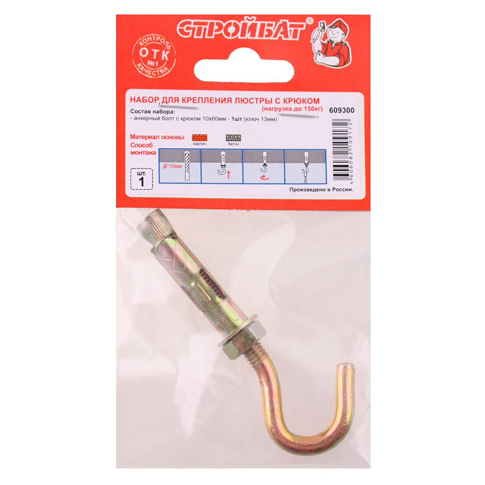 Анкерный болт с крюком 10х60 – 1 шт.