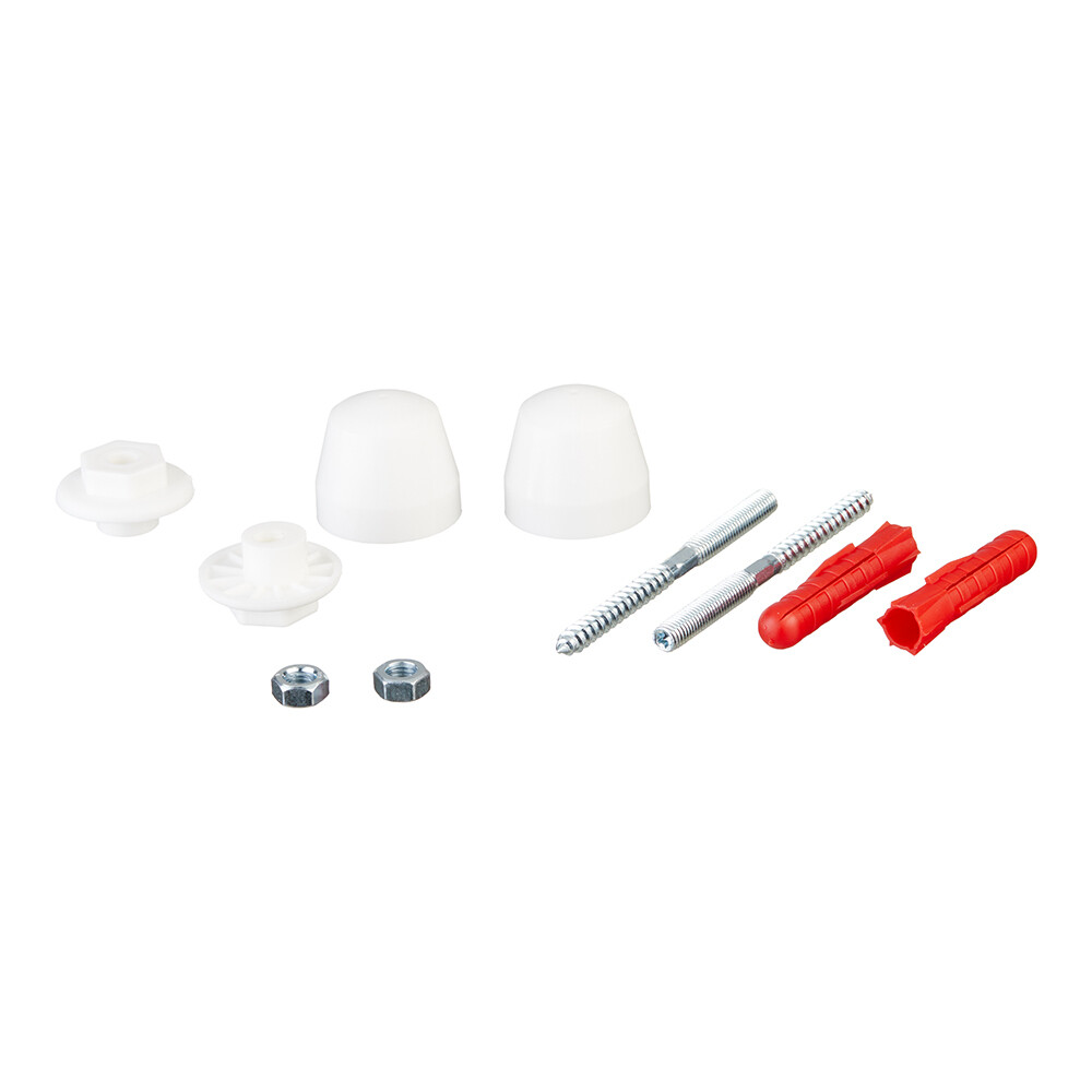 В набор входят: дюбель распорный из нейлона (2 шт), шпилька сантехническая оцинкованная (2 шт), втулка пластмассовая (2 шт), гайка (2 шт), шайба (2 шт).