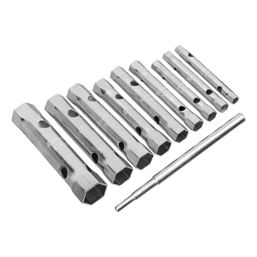 Набор Sparta 137525 включает 9 предметов — 8 оцинкованных торцевых ключей-трубок размером 6-22 мм и вороток. Позволяет откручивать и закручивать крепежные элементы с шестигранным профилем, расположенные в труднодоступных местах. Входящий в комплект вороток облегчает вращение ключей. Преимущества — ключи изготовлены из прочной и долговечной углеродистой стали 45 твердостью 41 HRC. Инструменты оцинкованы для надежной защиты от коррозии. Четкая маркировка позволяет быстро подобрать ключ нужного размера.