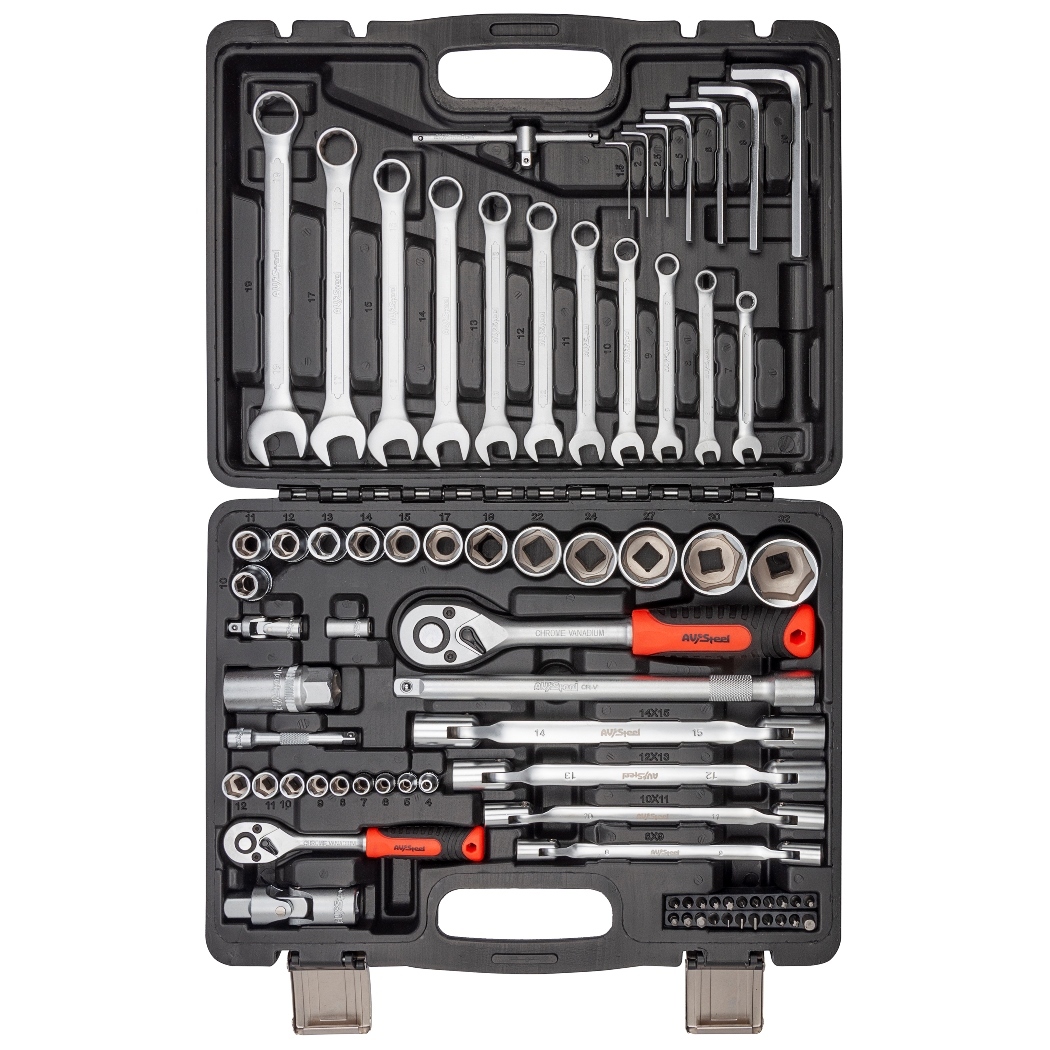 Профессиональный набор инструментов AV Steel AV-011076 — специализированные приспособления для ремонта и обслуживания автотранспорта. Эргономичные рукояти трещоточных приводов обеспечивают комфорт и удобство в работе. Инструмент компактно размещается в прочном кейсе с отделениями для каждого приспособления.