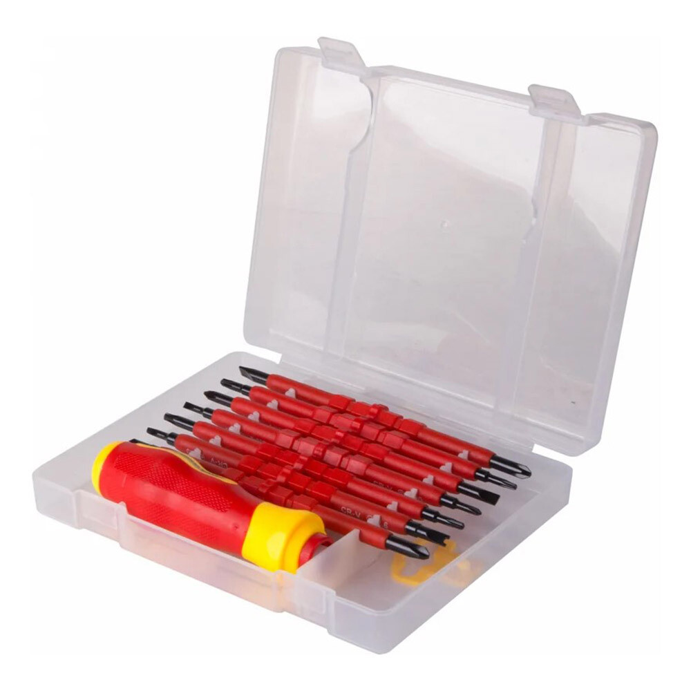 Набор отверток 8 в 1 предназначен для электромонтажных работ, монтажа/демонтажа крепежных соединений — шурупов, саморезов и т. д.