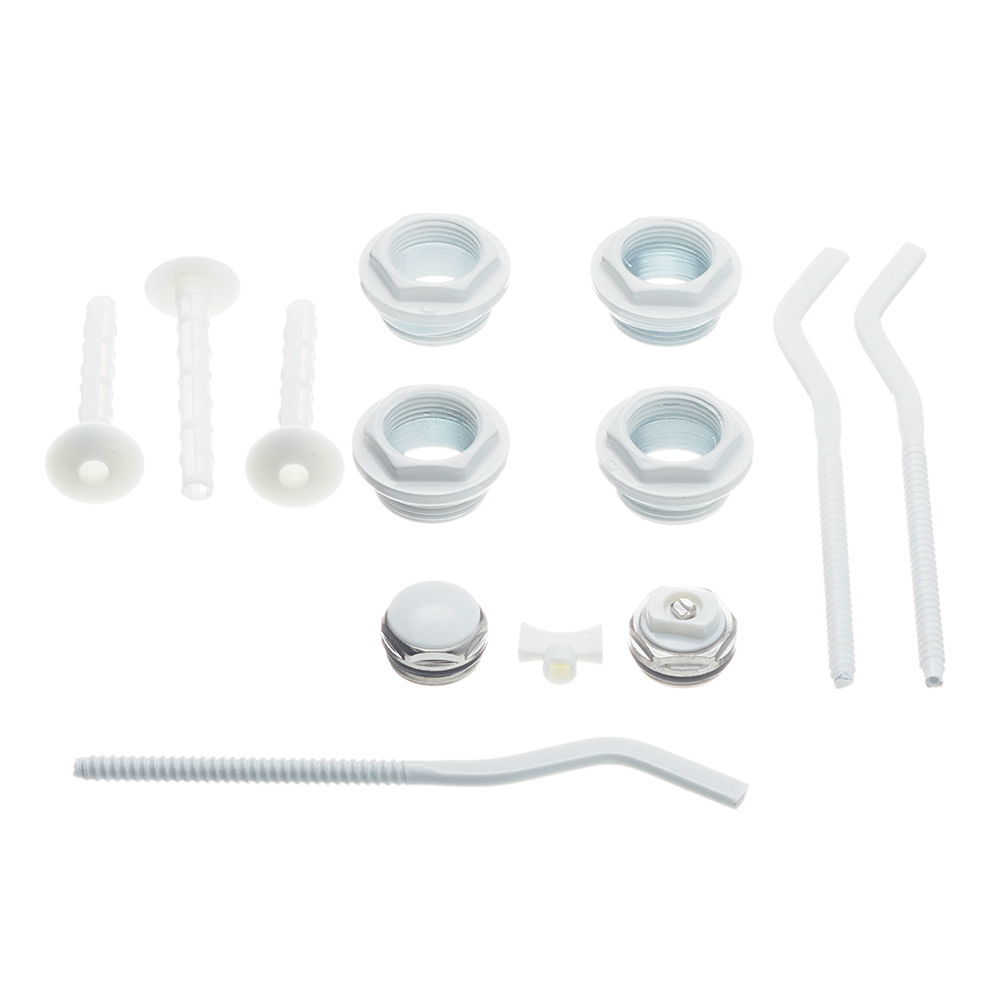 Комплектация: 4 футорки 1″x3/4″, заглушка 3/4″, воздухоотводчик 3/4″, 3 штыревых кронштейна, 3 дюбеля, ключ для воздухоотводчика;