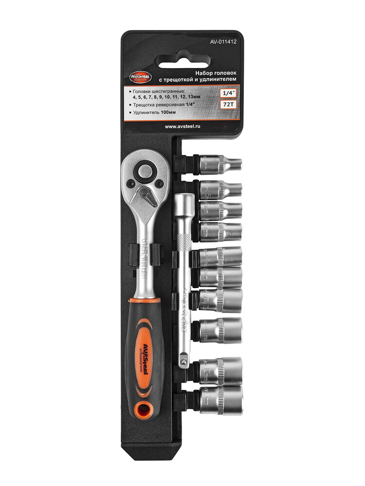 Набор торцевых головок с трещоткой AV Steel 1/4″ (AV-011412) (12 шт.)