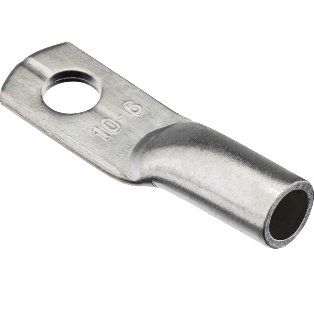 Наконечники этого типа применяются для установки электроприборов, подключения вводно-распределительных устройств и для заземления. Подходит для медных проводов сечением 10 мм2. Для работы с наконечниками данного типа применяется специальный инструмент — кримпер силовой для обжима наконечников и гильз (арт.26123 0).