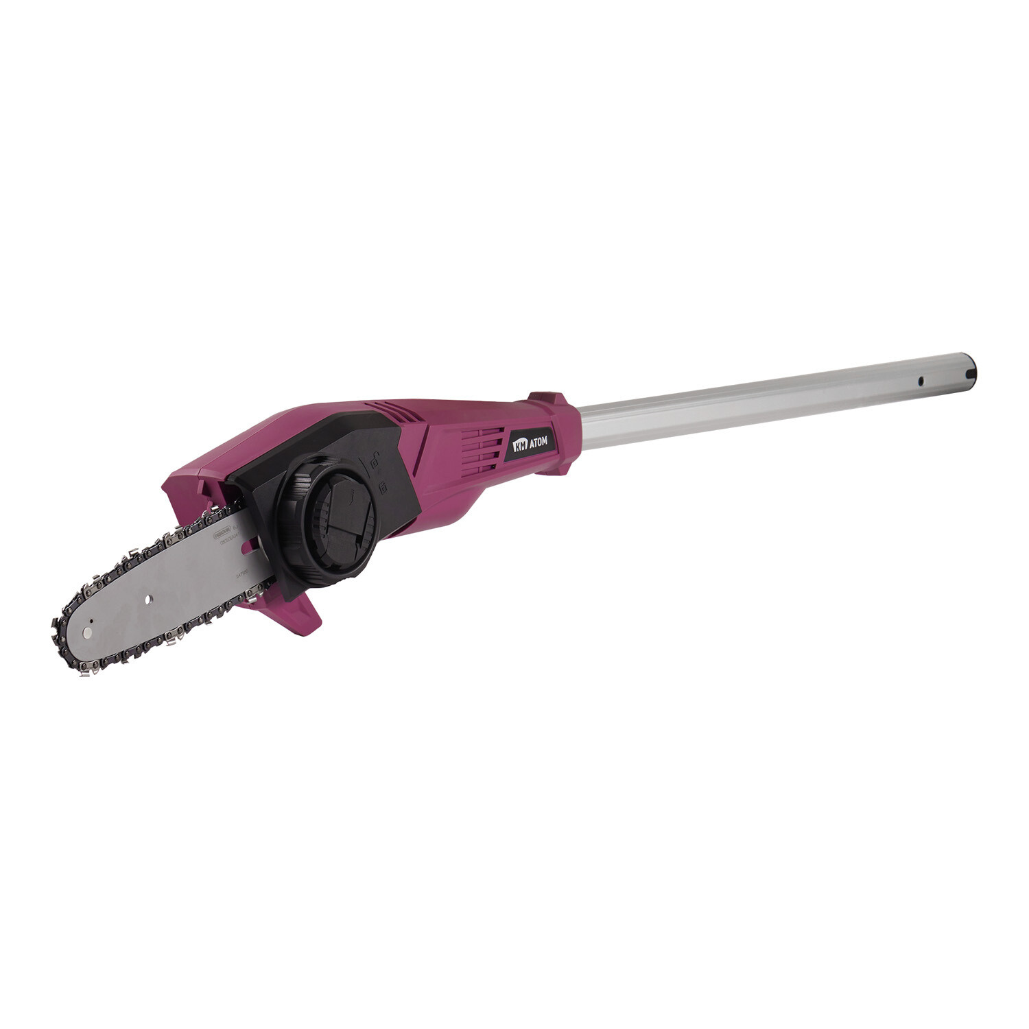 Устанавливается на штангу от кустореза КМ Атом CHT-183Т. Используется для отпиловки и распиловки небольших веток деревьев диаметром не более 150 мм, посредством движущейся пильной цепи, приводимой в движение электродвигателем.