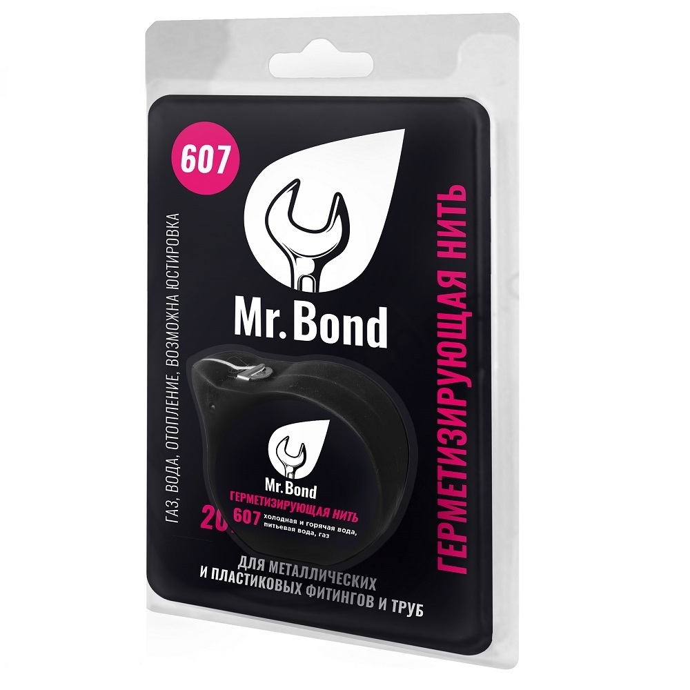 Герметизирующая нить QuickSPACER Mr.Bond 607. Состоит из полимерных микронитей, пропитанных герметизирующим составом, позволяющих выполнить юстировку перед эксплуатацией и обеспечить абсолютную герметичность соединения. Применяется с металлическими и пластиковыми фитингами и трубами в техническом, питьевом водоснабжении, газопроводах.