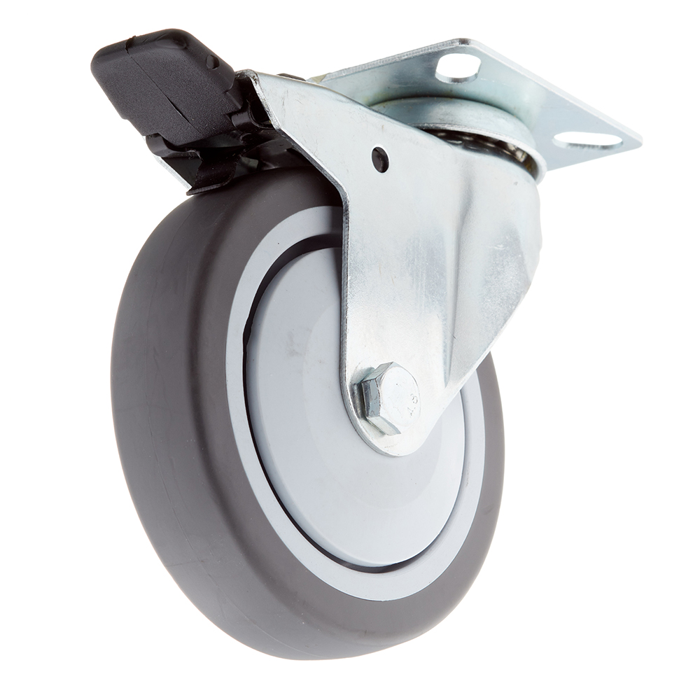 Опора колесная поворотная пластик/резина со стопором 100 мм серая (1 шт.)