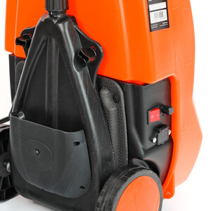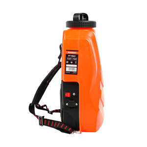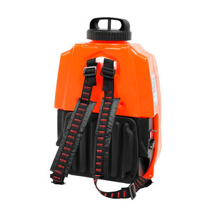PT-18AC – аккумуляторный ранцевый садовый опрыскиватель с 16-ти литровым баком для жидкости и транспортировочной тележкой. Применяется для бережного орошения или обработки удобрениями садовых растений. Бак изготовлен из материалов, устойчивых к агрессивным веществам. Жидкость заправляется через широкую горловину с фильтром. Для облегчения перемещения предусмотрена тележка. А комфорт ношения обеспечивают ранцевые ремни и вставка под спину. Подобрать силу подачи раствора можно регулятором, а нужный режим опрыскивания осуществляется заменой форсунки. Телескопическая штанга позволяет дотянуться до верхних веток деревьев. Одного заряда аккумулятора хватает на несколько циклов опустошения бака. Индикатор напряжения батареи расположен на корпусе.