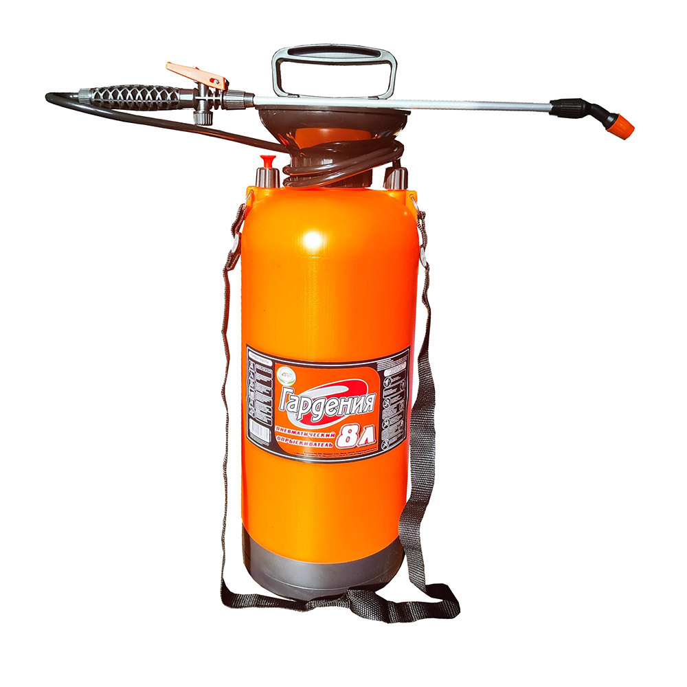 Предназначен для распыления жидких растворов удобрений для растений в саду и дома, растворов химикатов для борьбы с вредителями и болезнями, опрыскивания садовых и комнатных растений. Данный вид опрыскивателя — пневматический. Объём заливаемой жидкости — 8 л.