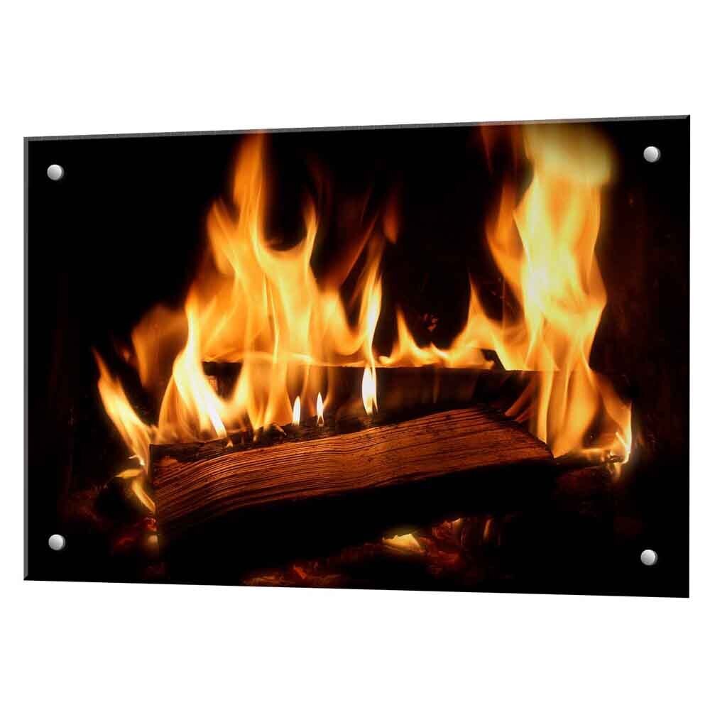 Панель стеновая закаленное стекло для кухни 900х600х4 мм костер
