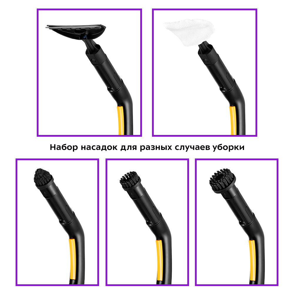 Пароочиститель КТ-9158-1 – многофункциональный аппарат, способный заменить паровую швабру, дезинфектор, стеклоочиститель и отпариватель для тканей.