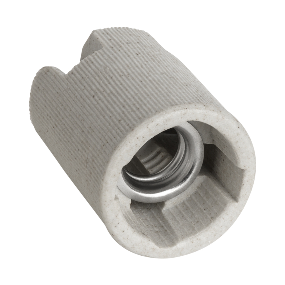 Патрон керамический для галогенных ламп. Обеспечивает надежную фиксацию ламп, используется для укомплектовывания светильников различного назначения (бытовых или промышленных). Контактные элементы изготовлены из высококачественных материалов.