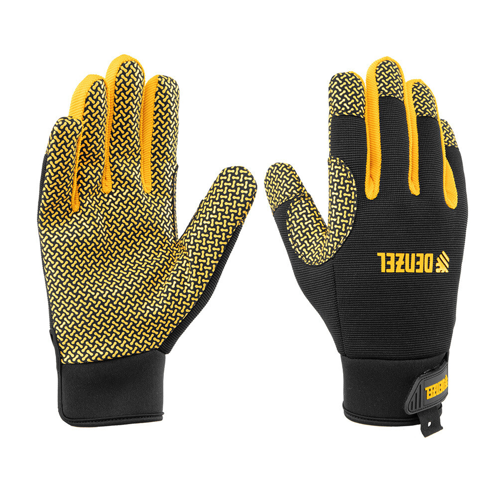 Перчатки полиамидные с силиконовым покрытием усиленные на липучках Denzel черно-желтые 10 (XL)