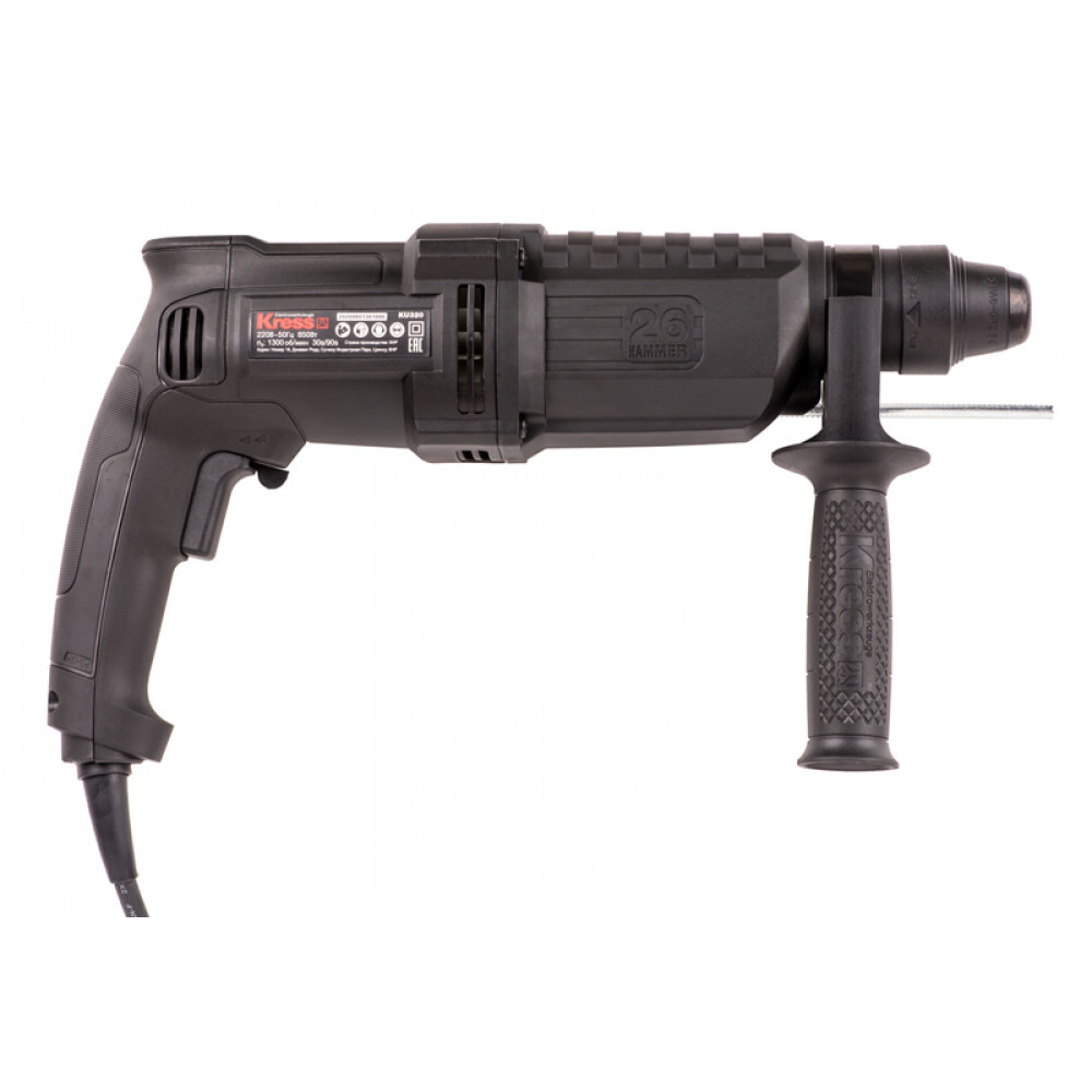 Перфоратор Kress оснащен мощным мотором для увеличения диаметра сверления до 26 мм, имеет лучшую эргономику — обеспечивает удобство захвата рукоятки.