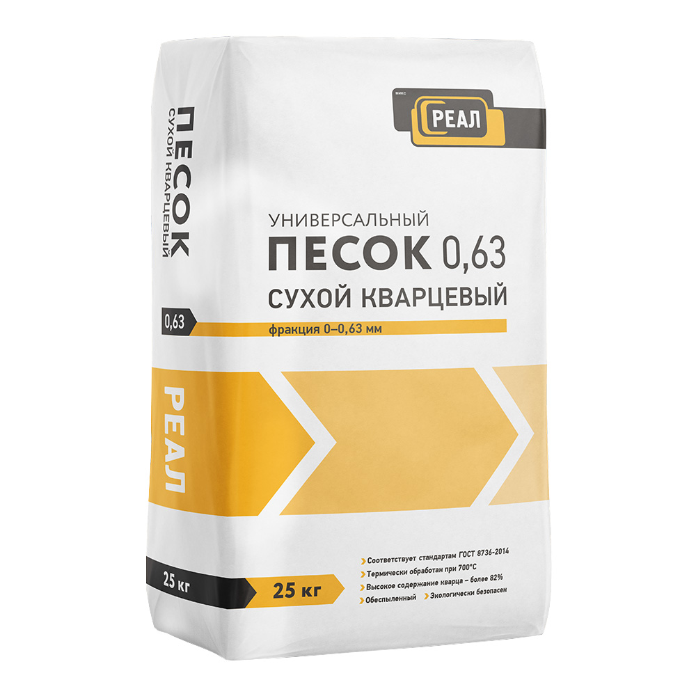 Песок строительный сухой кварцевый фракция 0-0,63 мм 25 кг