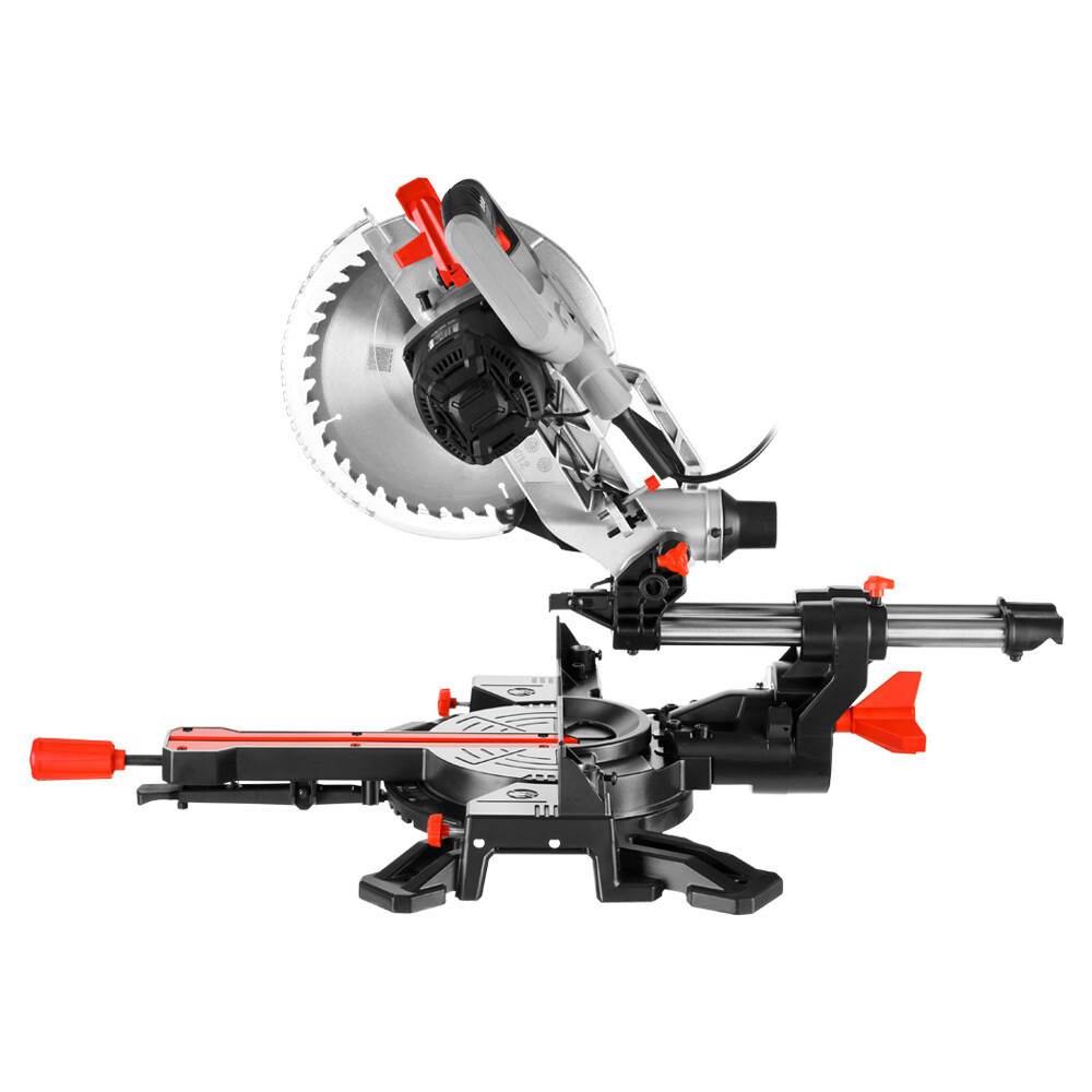 Мощная универсальная пила для всех видов пиления: прямого, косого, под наклоном и комбинированного. Увеличенная ширина пиления благодаря сдвижной голове диска и диску большого диаметра. Лазерная направляющая для точного пиления. Автоматически закрывающийся защитный кожух защищает оператора от травм и повреждений. Фиксирующийся в любом положении поворотный стол и удобная регулировка наклона облегчают установку угла пиления. Специальный сплав обеспечивает легкость и прочность конструкции и, соответственно, точность пиления. Эффективный пылеотвод способствует более чистой работе. Струбцина в комплекте для надежного удержания заготовки. Удлинительные опоры стола предотвращают опрокидывание отпиленной заготовки, что повышает безопасность.