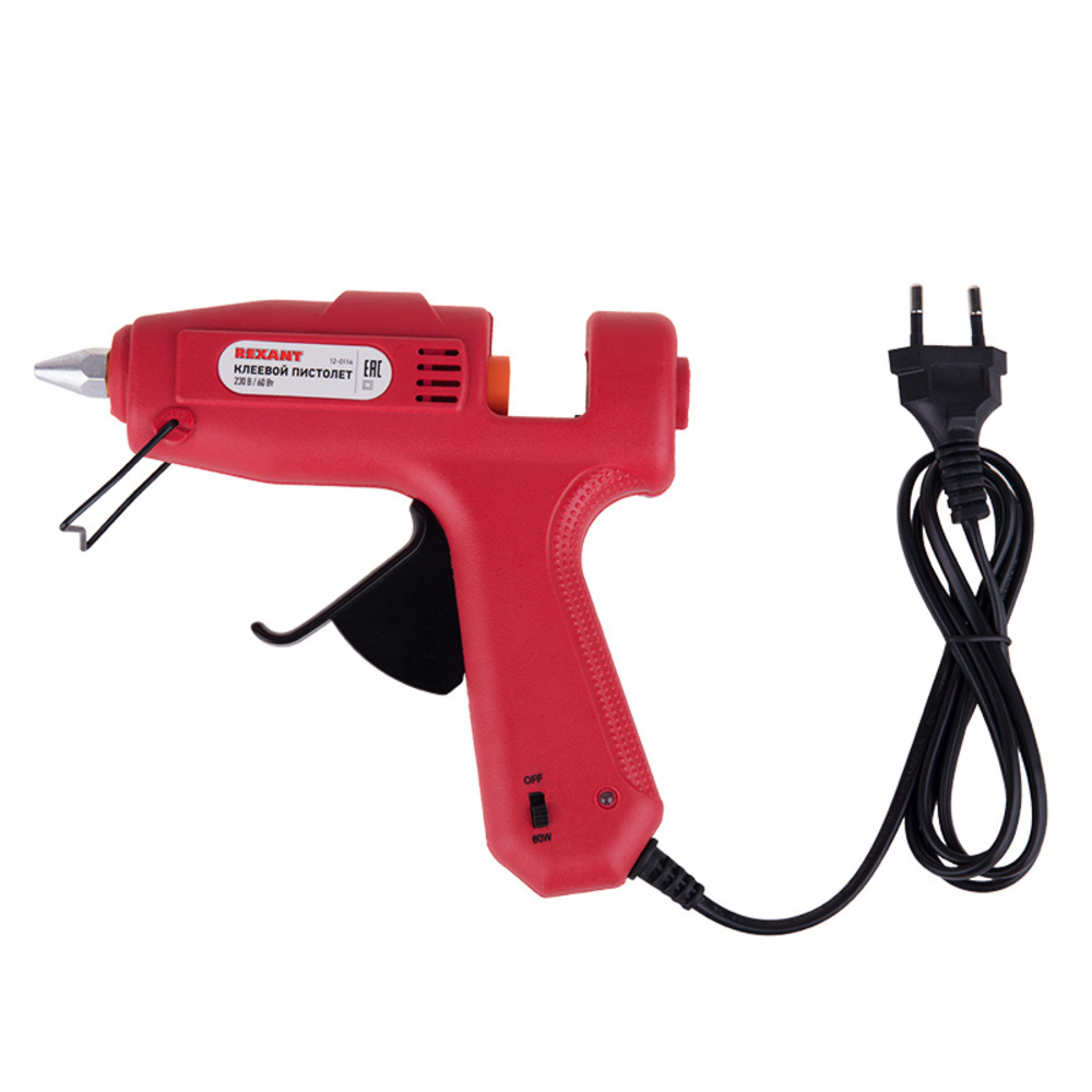 Пистолет клеевой Rexant (60 Вт, Ø11 мм) предназначен для прочной фиксации поверхностей с помощью расплавленной клеевой массы.