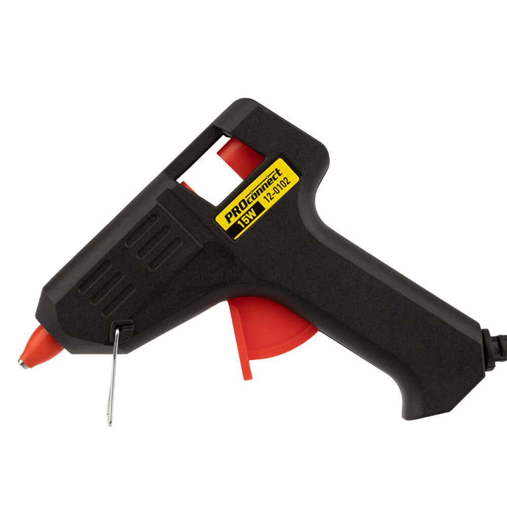 Пистолет клеевой PROconnect (15 Вт, Ø7 мм) предназначен для прочной фиксации поверхностей с помощью расплавленной клеевой массы.