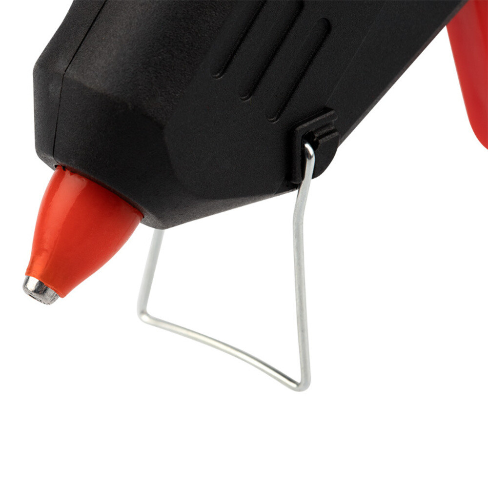 Корпус клеевого пистолета изготовлен из ударопрочной пластмассы и имеет скобу для установки в режиме ожидания.