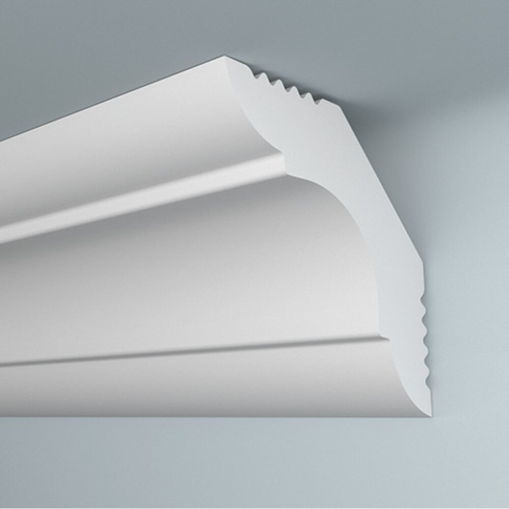 Предназначен для внутренней декоративной отделки жилых помещений. Классическая модель плинтуса имеет высокую плотность, гладкую матовую поверхность. Оптимальная плотность потолочного плинтуса обеспечивает однородность структуры, а небольшой вес создает дополнительные удобства при монтаже. Не требует обязательной окраски. Крепится к стене и потолку при помощи шпаклевки или жидких гвоздей.