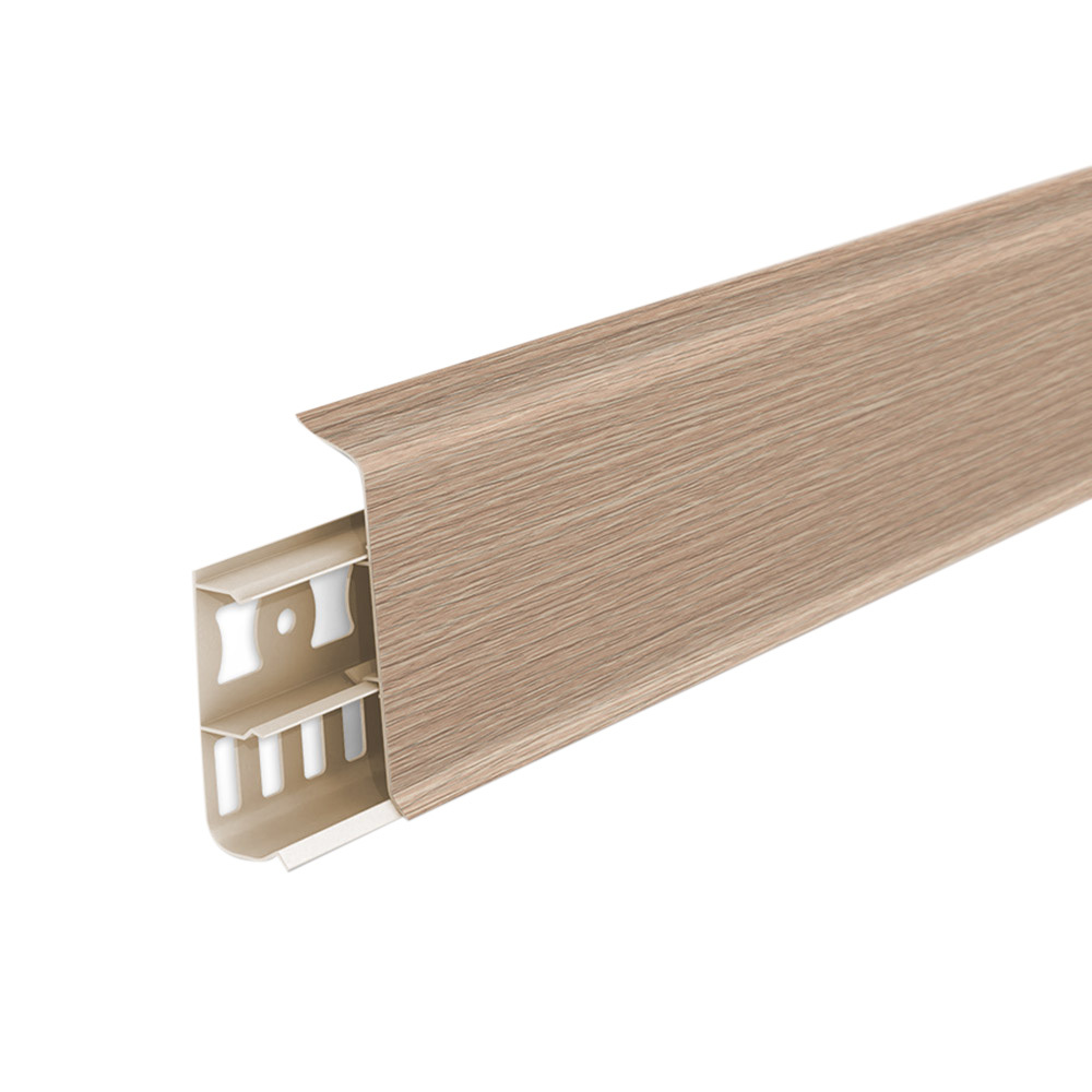 Плинтус ПВХ напольный Деконика 70 мм дуб северный 2200 мм Г-профиль с кабель-каналом
