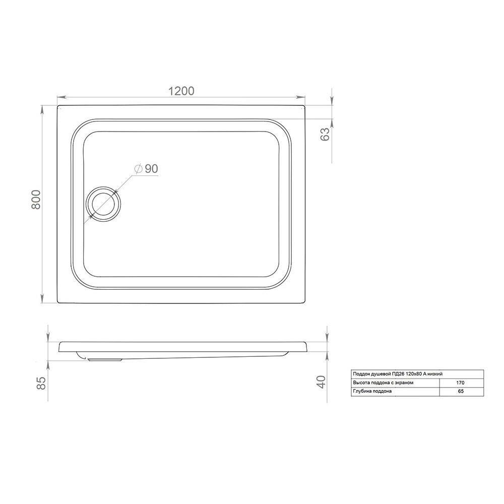 Поддон Triton акриловый 120х80х17 см прямоугольник белый низкий (Щ0000042952)