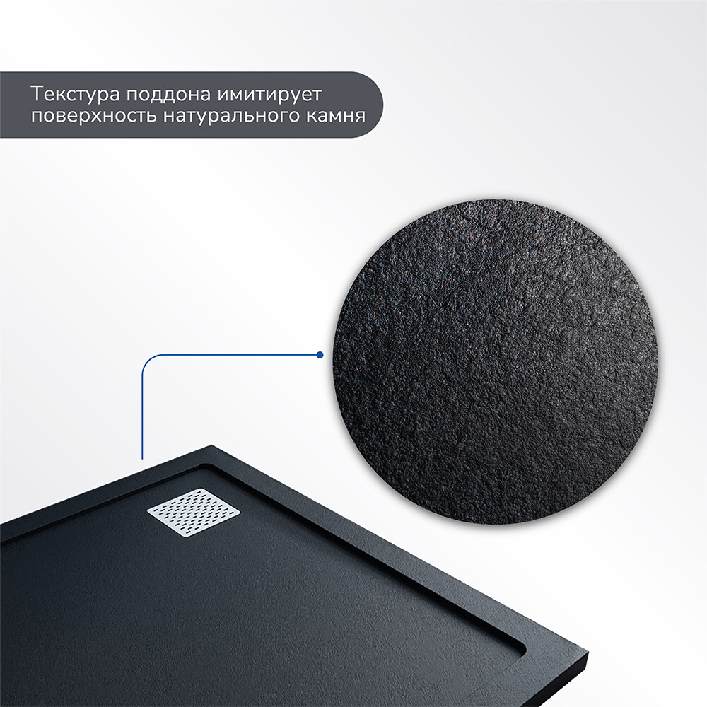Текстура поддона имитирует натуральный камень сланец. Легко подойдет к любому пространству ванной комнаты и дизайну за счет внешнего вида и цвета, делая ванные комнаты более просторными и минималистичными.