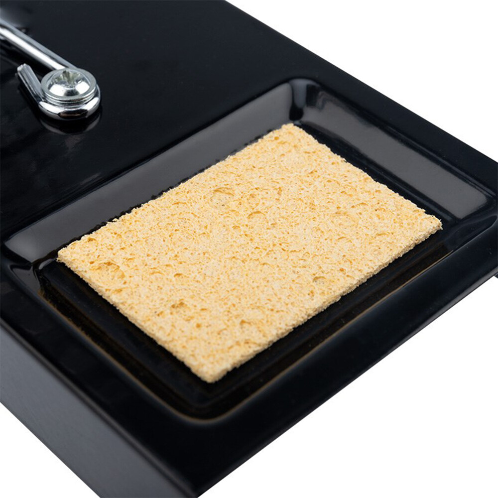 Губка для очистки жала паяльника в комплекте. Паяльник легко и удобно помещается в направляющую.