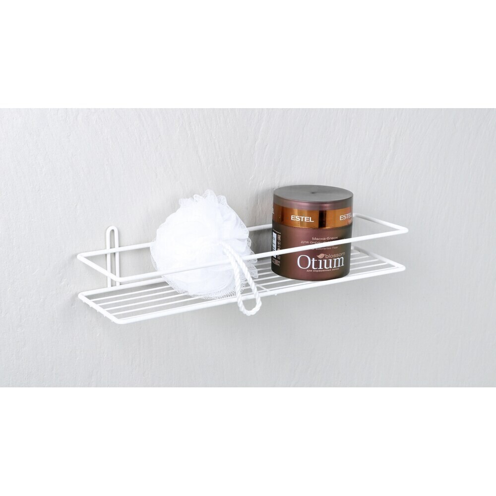 Прямая полка вмещает в себя большое количество мыльных принадлежностей. Изготовлена из стального прутка, с дополнительным влагоотражающим покрытием. Устойчива к коррозии даже во влажных помещениях.