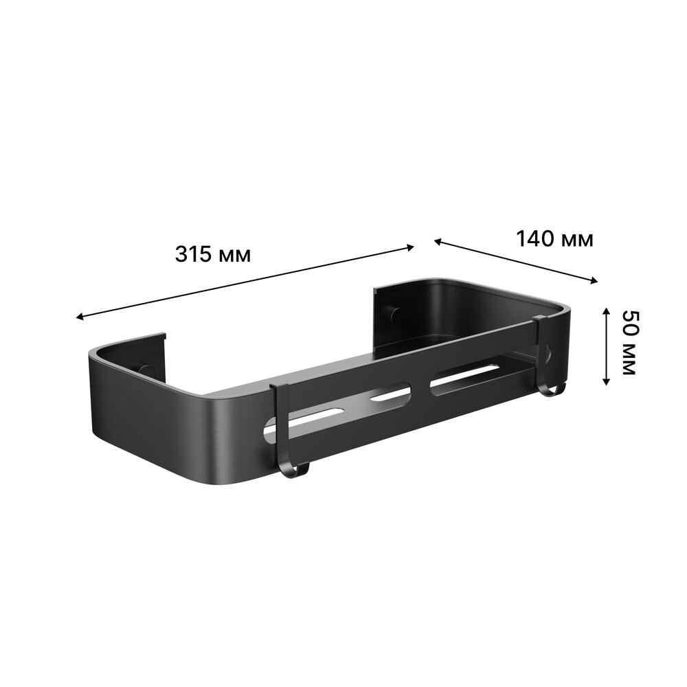 Полка для ванной Fora Axe с крючками 315х140х50 мм металл черная (FOR-AXE034BL)