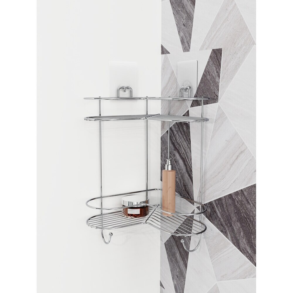 Полка для ванной Kleber Lite угловая двухъярусная с крючками 240х240х425 мм металл/силикон хром (KLE-LT083)