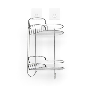 Двухъярусная угловая полка «Kleber Lite» имеет необычный дизайн в форме уголка с плавными круглыми краями. Хромированный металл отличается повышенной устойчивостью к влаге, а значит на вашей полке не появится ржавчина. Важной особенностью аксессуара является простота крепления. Специальные силиконовые пластины прочно фиксируют полку на стене, поэтому не нужно сверлить отверстия, чтобы установить ее в удобном месте.