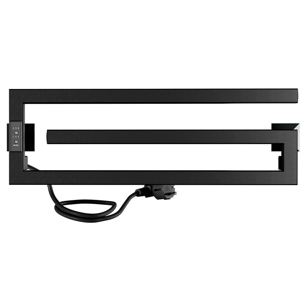 Полотенцесушитель электрический Indigo Sigma выполнен в цвете «Черный Муар». Матовость и равномерное покрытие изделию обеспечивает специальная технология окрашивания порошковой краской. На матовом покрытии не остаются отпечатки и разводы во время эксплуатации. Особенностью данной модели являются минимализм и расположение перекладин на подобие «скрепки». Не имеет замкнутого контура. Перекладины удобны для размещения текстильных вещей на просушивание. С помощью терморегулятора можно регулировать температуру в диапазоне от 40 до 50 градусов (с шагом 5 градусов) — уровень температуры показывается количеством горящих светодиодов. Таймер можно настроить на отключение через 2, 4, 6 часов.