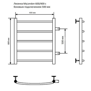 Полотенцесушитель водяной MyFrea MyLondon 600х400 мм с боковым подключением 500 мм хром