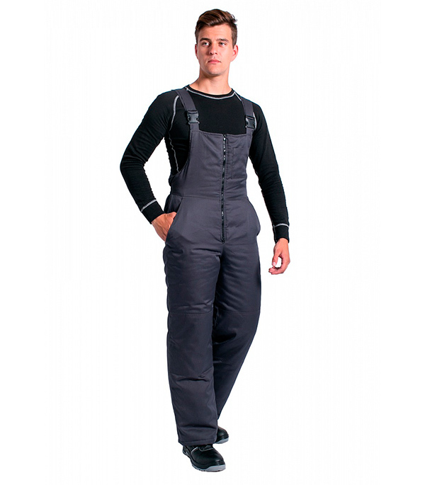 Утепленный полукомбинезон прямого силуэта, с центральной застежкой на открытую тесьму «молния», на грудке слева накладной карман, регулируемы бретели. На верхней части – два прорезных боковых кармана с наклонным входом. На нижней части усиленные подкладки в области колена. Предназначены для защиты работающих от пониженных температур в различных отраслях промышленности, а также производственных загрязнений.